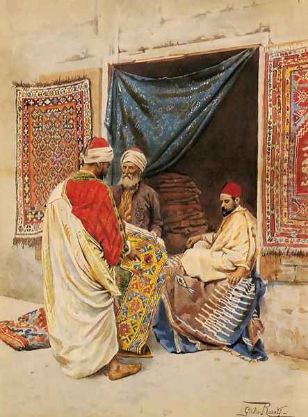 Bring the timeless beauty of Giulio Rosati's The Carpet Merchant into your home with a handmade oil painting reproduction. Carefully recreated on canvas by skilled artists using traditional techniques, this piece captures the delicate brushwork, subtle light, and vibrant color of the original masterpiece. With museum-level quality and rich texture, it brings elegance and artistic depth to any space. Enjoy free shipping and make this masterpiece a part of your personal collection.