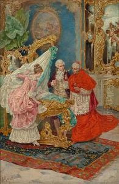 Bring the timeless beauty of Giulio Rosati's The Christening into your home with a handmade oil painting reproduction. Carefully recreated on canvas by skilled artists using traditional techniques, this piece captures the delicate brushwork, subtle light, and vibrant color of the original masterpiece. With museum-level quality and rich texture, it brings elegance and artistic depth to any space. Enjoy free shipping and make this masterpiece a part of your personal collection.