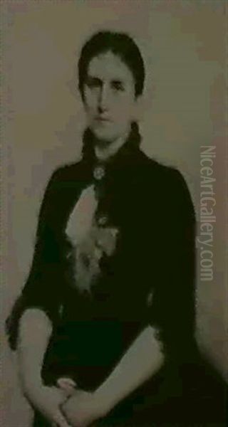 Portrait Of A Lady, Half Length, In A Dark Lace Trimmed Dress With Red Flowers And A Diamond Broach