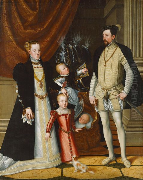 Holy Roman Emperor Maximilian II. of Austria and his wife Infanta Maria of Spain with their children.