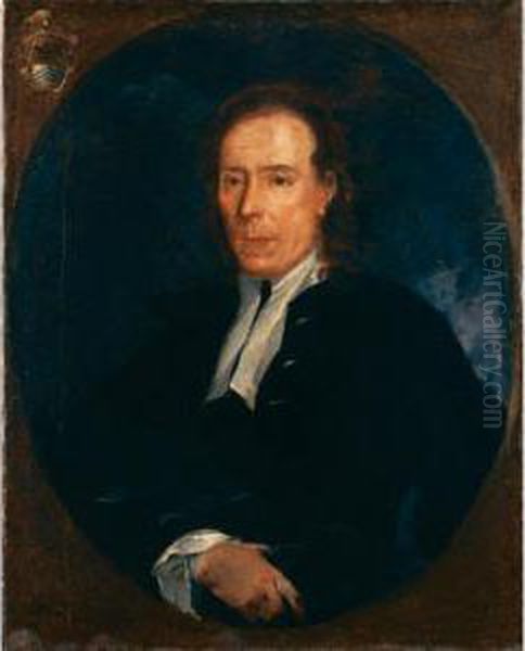 Ritratto Maschile, Iscritto In Una Finta Cornice Rettangolare Con Stemma Di Famiglia In Alto A Sinistra