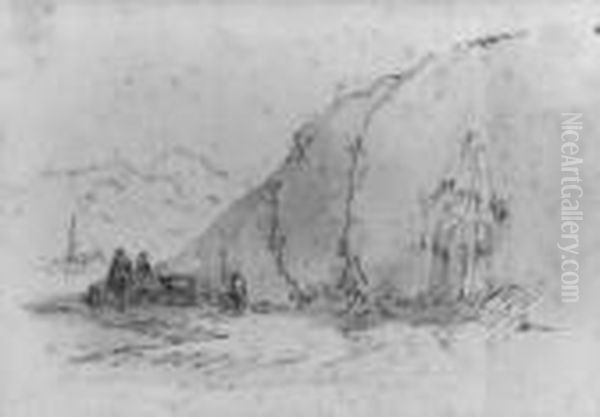 Hugellandschaft Mit Einem Monument Und Figurlicher Staffage