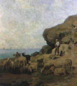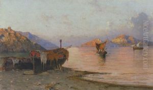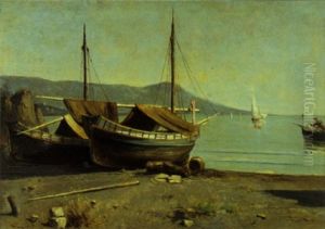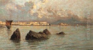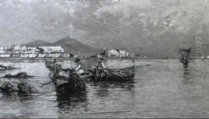 Fishermen Tending Their Nets In The Bay Of Naples A Companion