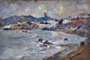 Vue De L'ile D'ischia Avec Au Premier Plan Les Enfants Del'artiste