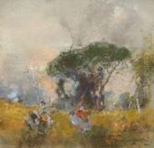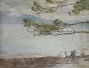 A Gathering On The Riverbank At Dusk