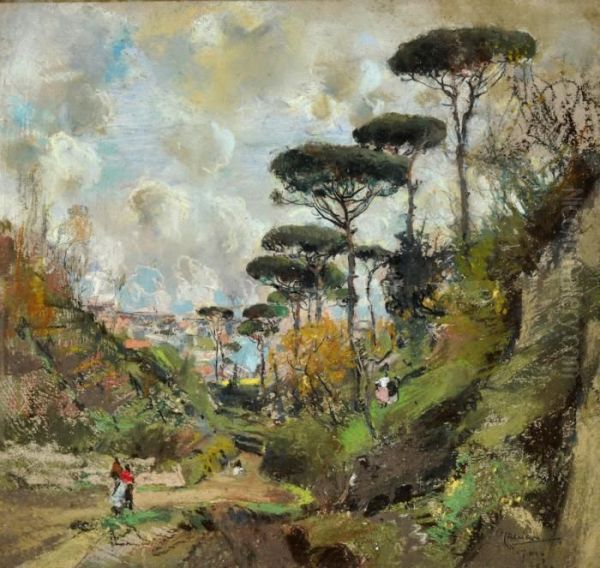 Paesaggio Con Figure Oil Painting by Giuseppe Casciaro