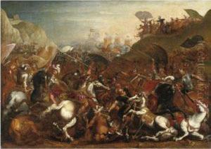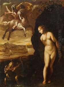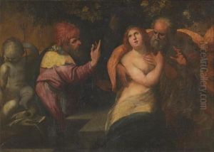 Nymph With Putto And Three Satyrs, One Playing A Reed Pipe.