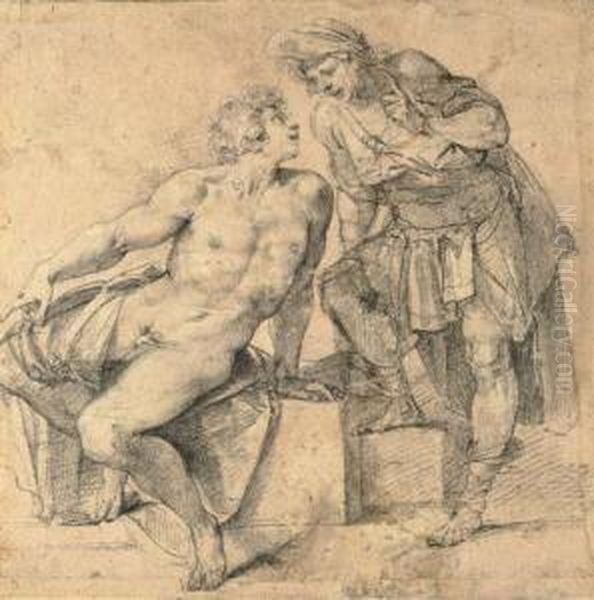 Bring the timeless beauty of Giuseppe Cesari's A Seated Nude Youth Turning Addressed By A Soldier into your home with a handmade oil painting reproduction. Carefully recreated on canvas by skilled artists using traditional techniques, this piece captures the delicate brushwork, subtle light, and vibrant color of the original masterpiece. With museum-level quality and rich texture, it brings elegance and artistic depth to any space. Enjoy free shipping and make this masterpiece a part of your personal collection.