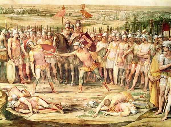 Bring the timeless beauty of Giuseppe Cesari's Battle between the Horatii and the Curiatii into your home with a handmade oil painting reproduction. Carefully recreated on canvas by skilled artists using traditional techniques, this piece captures the delicate brushwork, subtle light, and vibrant color of the original masterpiece. With museum-level quality and rich texture, it brings elegance and artistic depth to any space. Enjoy free shipping and make this masterpiece a part of your personal collection.