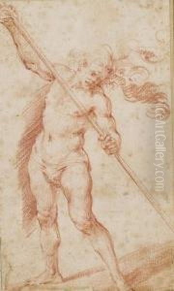 Etude D'homme Nu Debout Tenant Un Baton Dans Les Mains