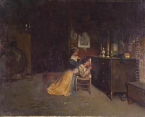 Bring the timeless beauty of Giuseppe Costantini's The Storyteller into your home with a handmade oil painting reproduction. Carefully recreated on canvas by skilled artists using traditional techniques, this piece captures the delicate brushwork, subtle light, and vibrant color of the original masterpiece. With museum-level quality and rich texture, it brings elegance and artistic depth to any space. Enjoy free shipping and make this masterpiece a part of your personal collection.