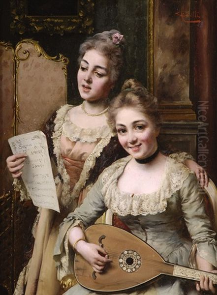 Bring the timeless beauty of Giuseppe Galli's Ein Hubsches Duett into your home with a handmade oil painting reproduction. Carefully recreated on canvas by skilled artists using traditional techniques, this piece captures the delicate brushwork, subtle light, and vibrant color of the original masterpiece. With museum-level quality and rich texture, it brings elegance and artistic depth to any space. Enjoy free shipping and make this masterpiece a part of your personal collection.