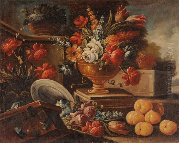 Natura Morta Con Vasi Di Fiori, Pesche E Piatto