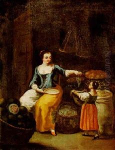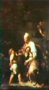 Scena Satirica Di Vecchie Che Ne Curano Un'altra Con Clistere. Scena Satirica Di Vecchie Presso Un Focolare