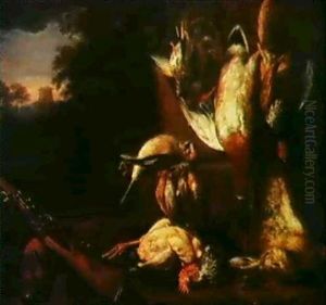 Portrait Of A Huntsman With His Dog And Game, In A Landscape