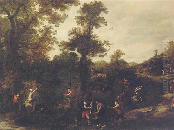 A Wooded Landscape With A Boar Hunt