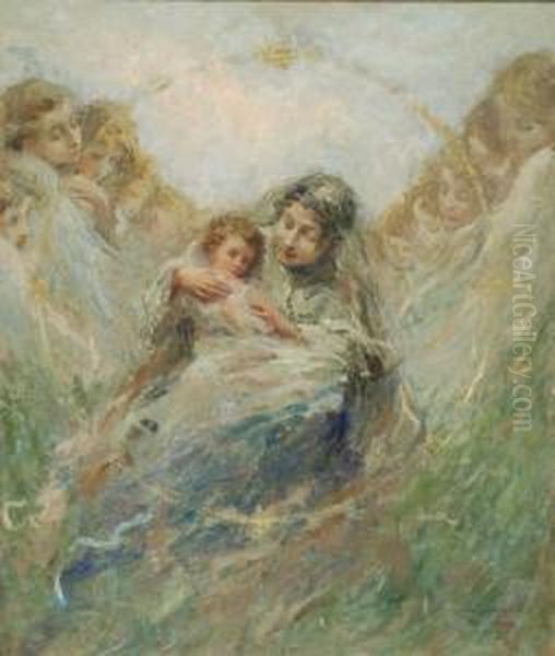 "mater Amabilis" Bozzetto Ad Olio Su Tela Iscritto "schizzo.... Mentessi....." In Basso A Destra, Firmato. In Cornice