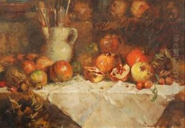 Natura Morta Con Frutta Ebrocca Con Pennelli