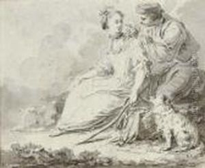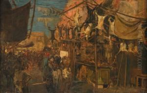 A Market Scene With A Woman Holding A Basket In The Foreground; Also A Companion Painting (a Pair)