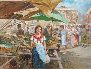 Bring the timeless beauty of Giuseppe Pitto's A Market Scene With A Woman Holding A Basket In The Foreground; Also A Companion Painting (a Pair) into your home with a handmade oil painting reproduction. Carefully recreated on canvas by skilled artists using traditional techniques, this piece captures the delicate brushwork, subtle light, and vibrant color of the original masterpiece. With museum-level quality and rich texture, it brings elegance and artistic depth to any space. Enjoy free shipping and make this masterpiece a part of your personal collection.