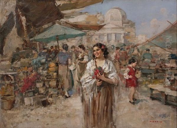 At An Italian Market Oil Painting by Giuseppe Pitto