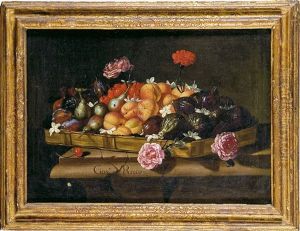 Stillleben Mit Fischen Und Fruchten In Einem Korb