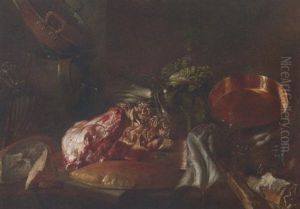 Kuchenstillleben Mit Fleisch, Einem Kalbskopf, Einer Ziege, Einer Pastete Und Brot