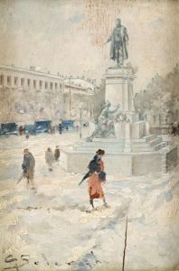 Milano Arco Della Pace, Carrozzelle Sotto La Neve