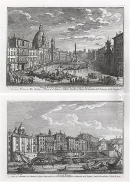 Differentes Vues De Places Et D'eglises De Rome : Piazza S