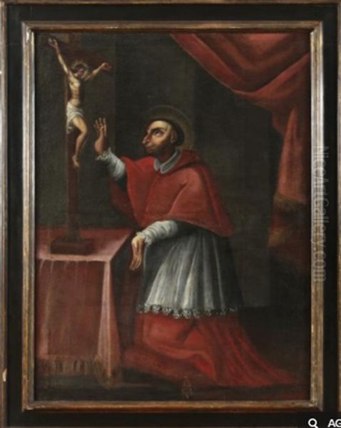Saint Bartholome Agenouille Devant Une Croix