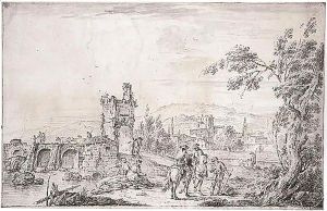A Landscape With Peasants By A Bridge, And A Town In The Background