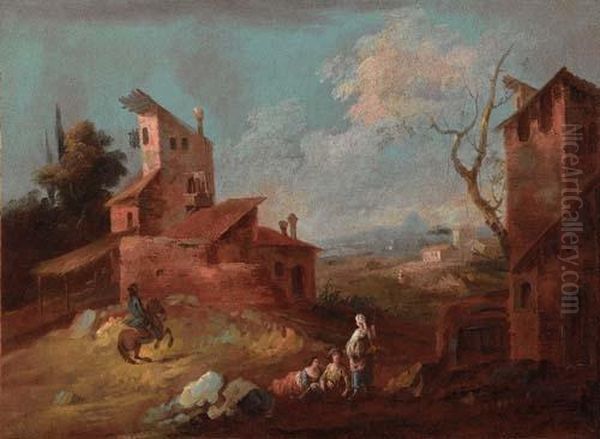 Paesaggio Con Case E Viandanti