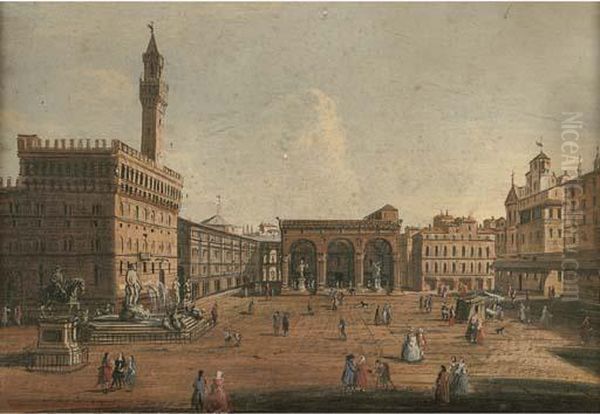 The Piazza Della Signoria Florence, Looking Towards The Loggia Deilanzi