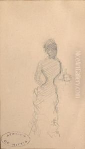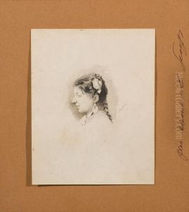 Portraitskizze Einer Dame Mit Gelocktem Haar Im Profil