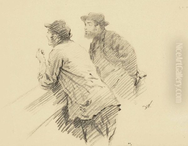 Deux Hommes Accoudes Discutant