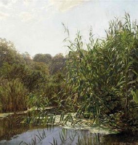 Sommerlandskab Med Alob Og Sivbevokset Bred