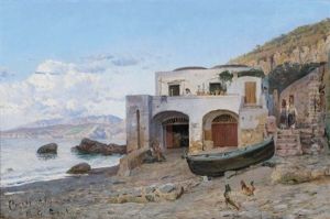 Beach Scene Near A Village