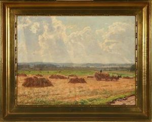 Danish Summer Landscape With Harvest Workers On The Field