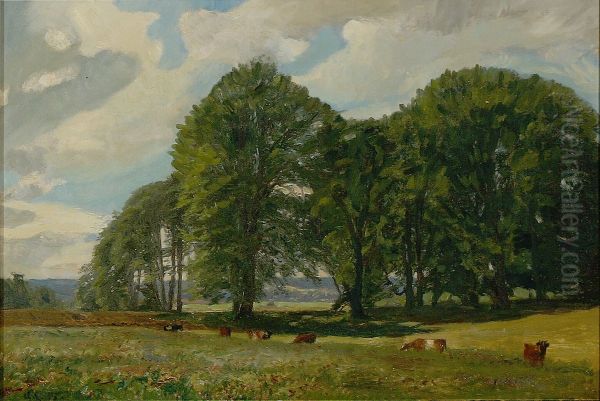 Bring the timeless beauty of Godfred B.W. Christensen's A landscape with cows and tall trees. into your home with a handmade oil painting reproduction. Carefully recreated on canvas by skilled artists using traditional techniques, this piece captures the delicate brushwork, subtle light, and vibrant color of the original masterpiece. With museum-level quality and rich texture, it brings elegance and artistic depth to any space. Enjoy free shipping and make this masterpiece a part of your personal collection.