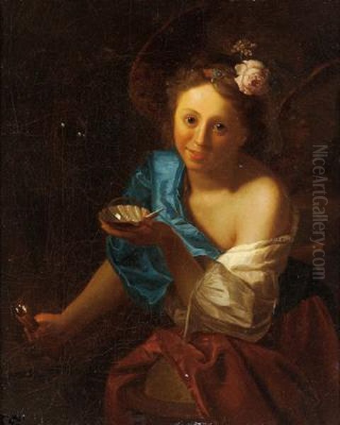 Ritratto Di Una Signora Con Una Conchiglia Per Soffiare Bolle Di Sapone E Una Fiaccola Accesa