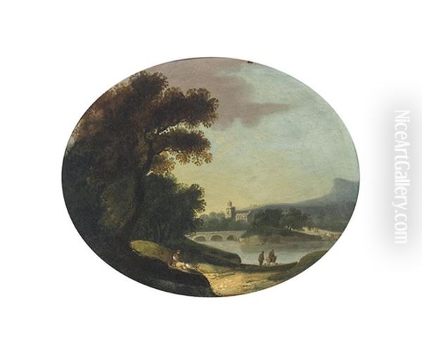 A River Landscape With Figures; And A River Landscape With A Bridge In The Distance