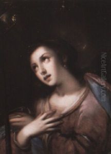 Portrait Of A Standing Girl, Holding A Perfume-bottle On A Chain, And Wearing A Ruff