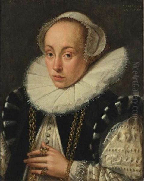Bring the timeless beauty of Gortzius Geldorp's A Portrait Of A Lady, Aged 28, Bust Length, Wearing A Black And White Dress With A Lace Collar, A White Headdress, Gold Necklace And Jewellery into your home with a handmade oil painting reproduction. Carefully recreated on canvas by skilled artists using traditional techniques, this piece captures the delicate brushwork, subtle light, and vibrant color of the original masterpiece. With museum-level quality and rich texture, it brings elegance and artistic depth to any space. Enjoy free shipping and make this masterpiece a part of your personal collection.