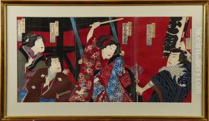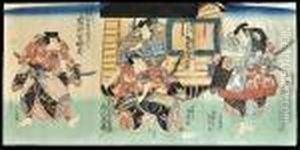 Triptych: Actor In The Role Of A Warrior And Two Figures