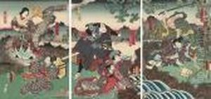 Triptych: Two Men Emerging From A Palanquin Are Attacked By Warriors