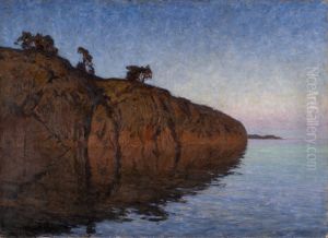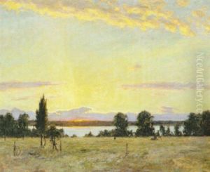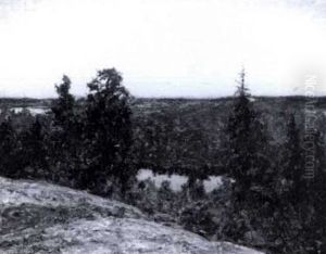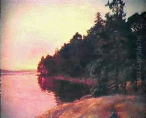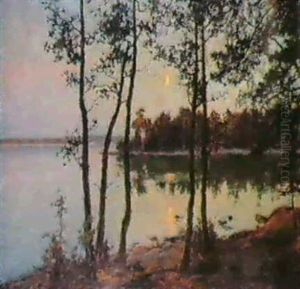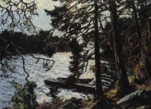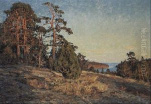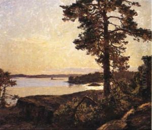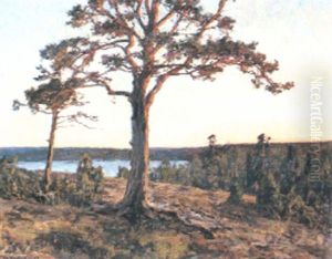 Landskap Med Tallar Vid Vatten - Aftonstamning