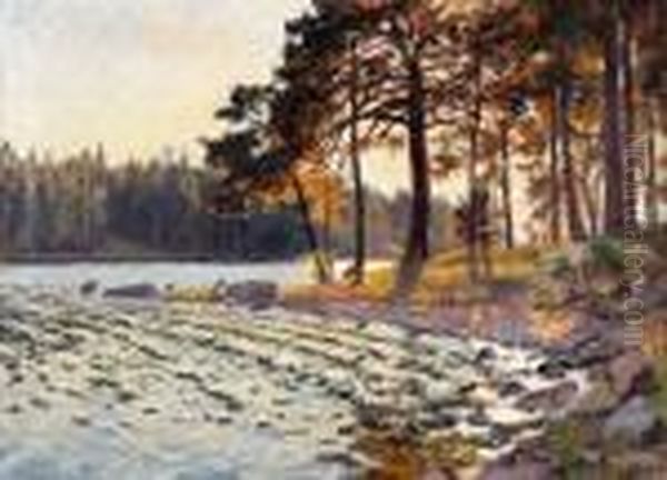 Skargardsvik I Kvallssol Oil Painting by Gottfrid Kallstenius
