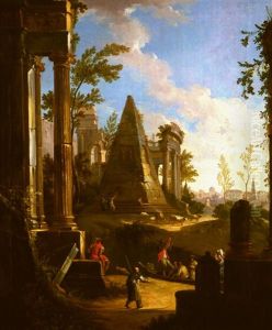 Figures In A Mountainous Landscape With Ruins