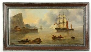 Sejlskibe Ud For Et Havneindlob, I Forgrunden Strandet Tremaster