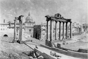 Figures Near The Temple Of Saturn On The Forum Romanum, Rome